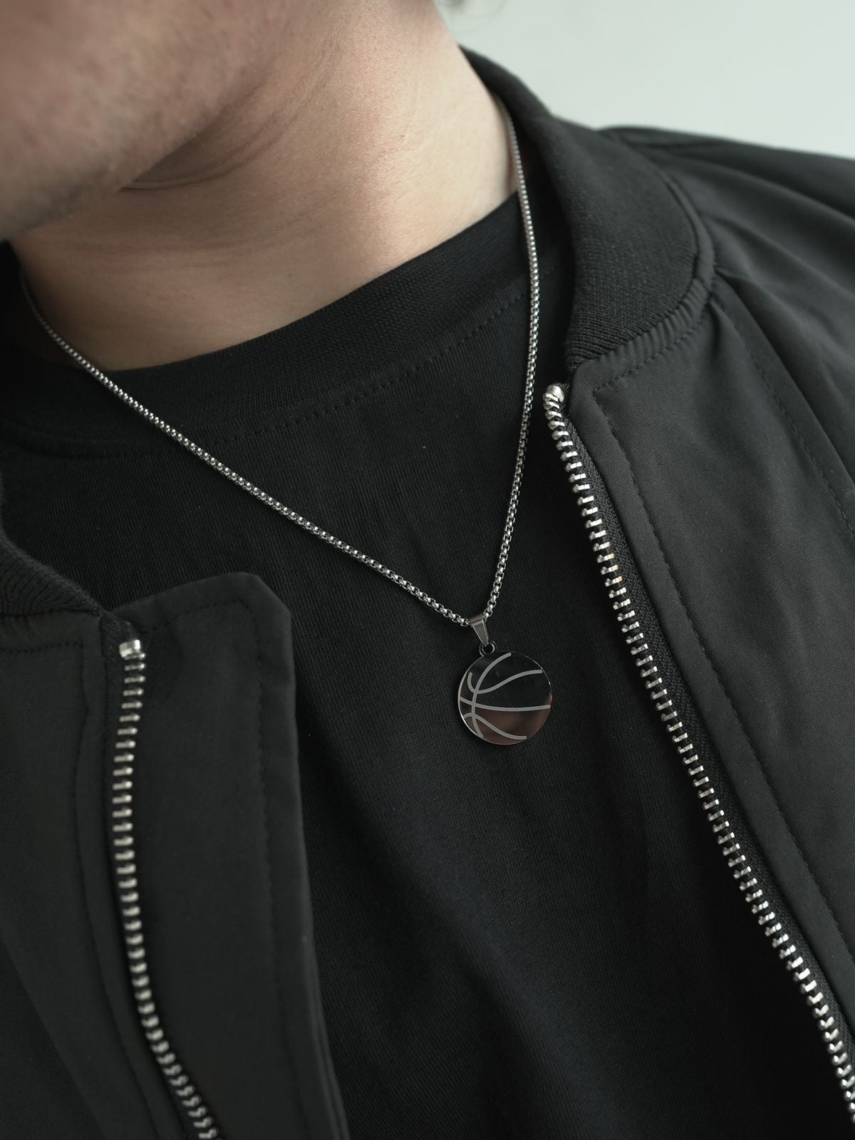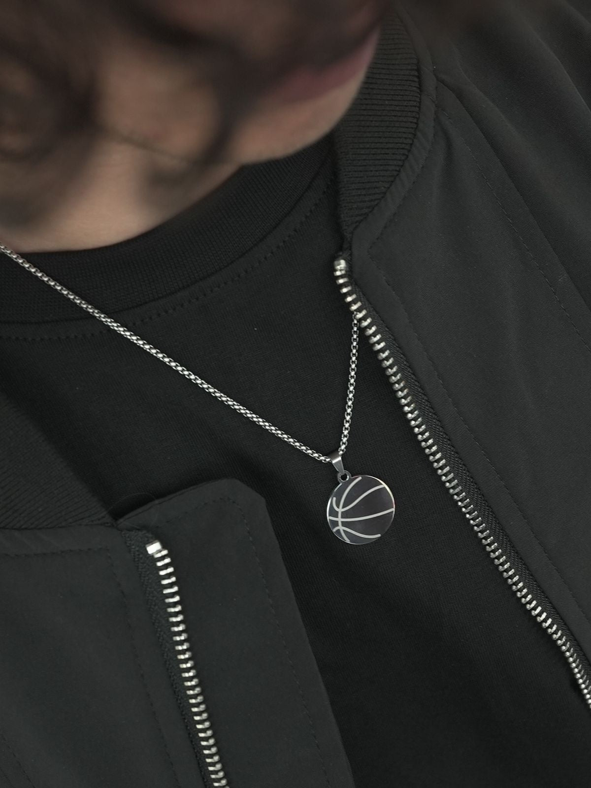 The circular pendant reflects motion and balance, while the engraved lines echo movement on the hardwood — smooth, intentional, unstoppable.